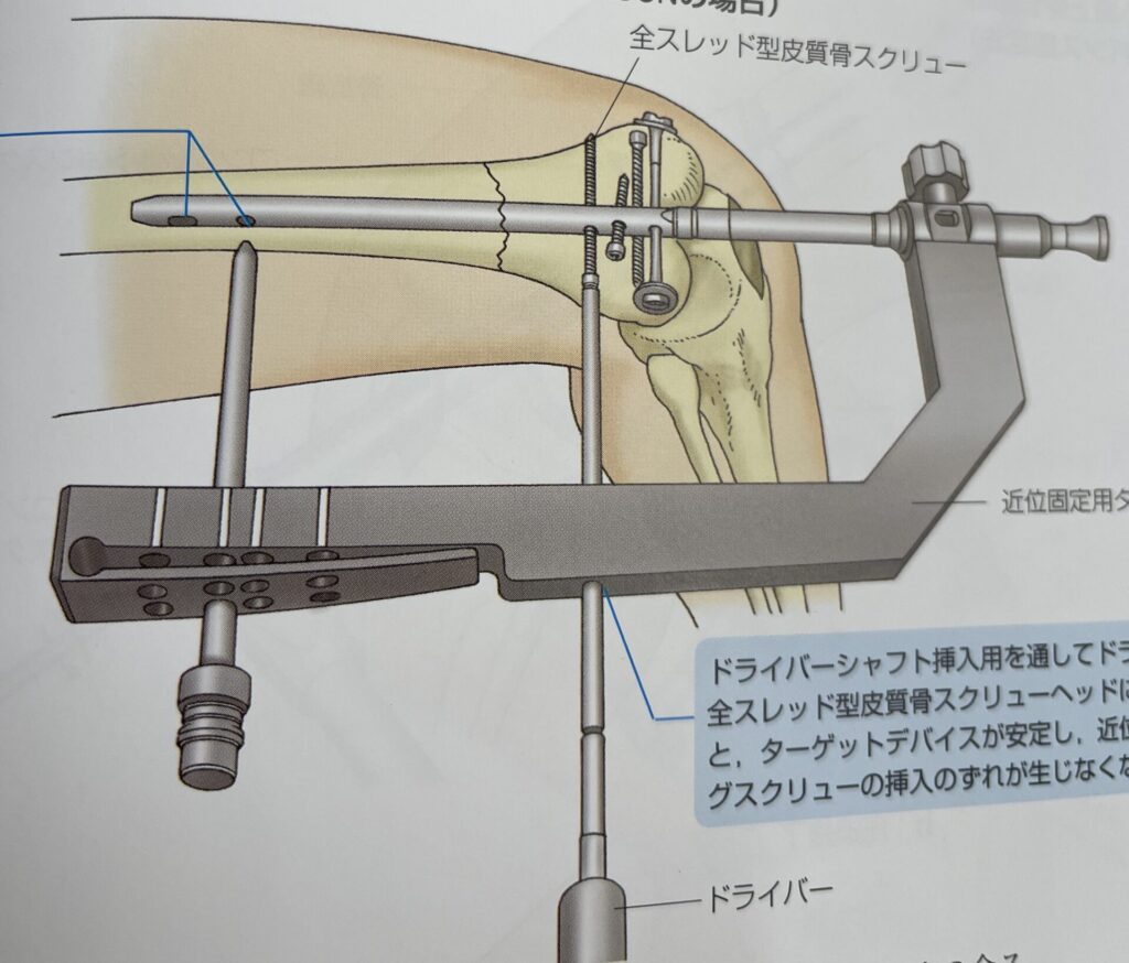 通常であれば、膝関節を開けて逆行性髄内釘挿入手術を行います。